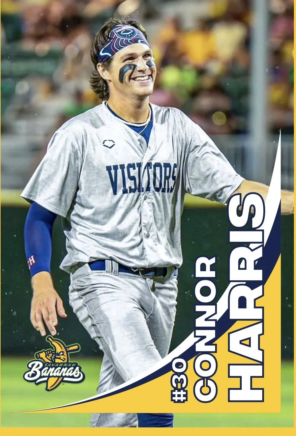 Connor Harris is a pitcher for the Savannah Bananas, the exhibition baseball team where sport and spectacle meet. Baseball has been a part of Connor’s life from day one—he came home from the hospital as a newborn in a Yankees onesie—and today he brings that lifelong love of the game to Banana Ball fans nationwide. Playing Banana Ball led Connor to the place he was truly meant to be, and he uses his platform, both IRL and on social media, to show what it looks like to pursue your purpose. Pumping up the crowds, playing in sold-out stadiums across America, his towering 6’8” frame dancing on the mound, and training hard with his team — he lives every inning to the fullest. Connor dedicates his time off the diamond to mentoring young athletes, sharing his story in schools and Little League programs to encourage kids to believe in themselves and turn every curveball into opportunity. Swing for the fences!